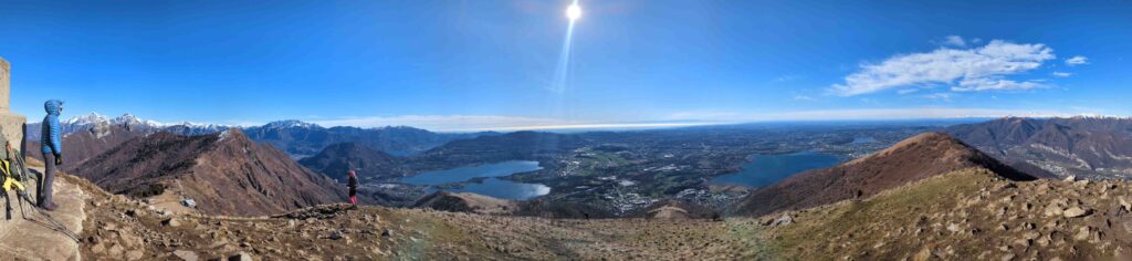The view was absolutely spectacular. The surrounding mountains were dusted with fresh, powdered snow. The visibility was so perfect that we could see the entire sprawling city of Milan below us, stretching all the way out to Torino and the distant peaks beyond. We spent a long time just sitting in the sun on Monte Rai, soaking in the warmth and the breathtaking panorama.