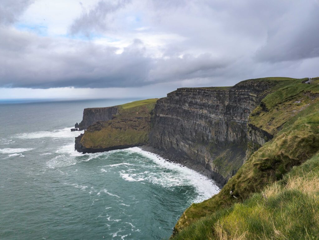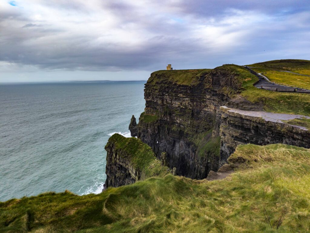 As I approached the famous cliffs, the predictable Irish weather finally arrived, and the rain came down in buckets. I was prepared with full rain gear. Parking here is 15 euros, but standing on these iconic 214-meter-high cliffs, watching the Atlantic toss itself against the sheer rock, is humbling. I struck up a conversation with a German au pair who was utterly overwhelmed by the landscape. To me, it was just another day outdoors, but the shared experience of the wild weather was memorable.