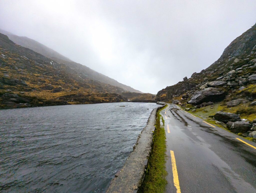 The Gap of Dunloe is a glacier-carved pass, millions of years old, and it was the undisputed peak of the weekend. It was raining heavily, turning the massive black rock faces into a complex system of spontaneous waterfalls. The road is notoriously narrow and twisty, but I was entirely alone. Navigating this desolate, rugged pass with no sense of what was around the next corner felt genuinely magical. It was moody, dramatic, and intensely wild, easily rivaling my experiences in New Zealand.