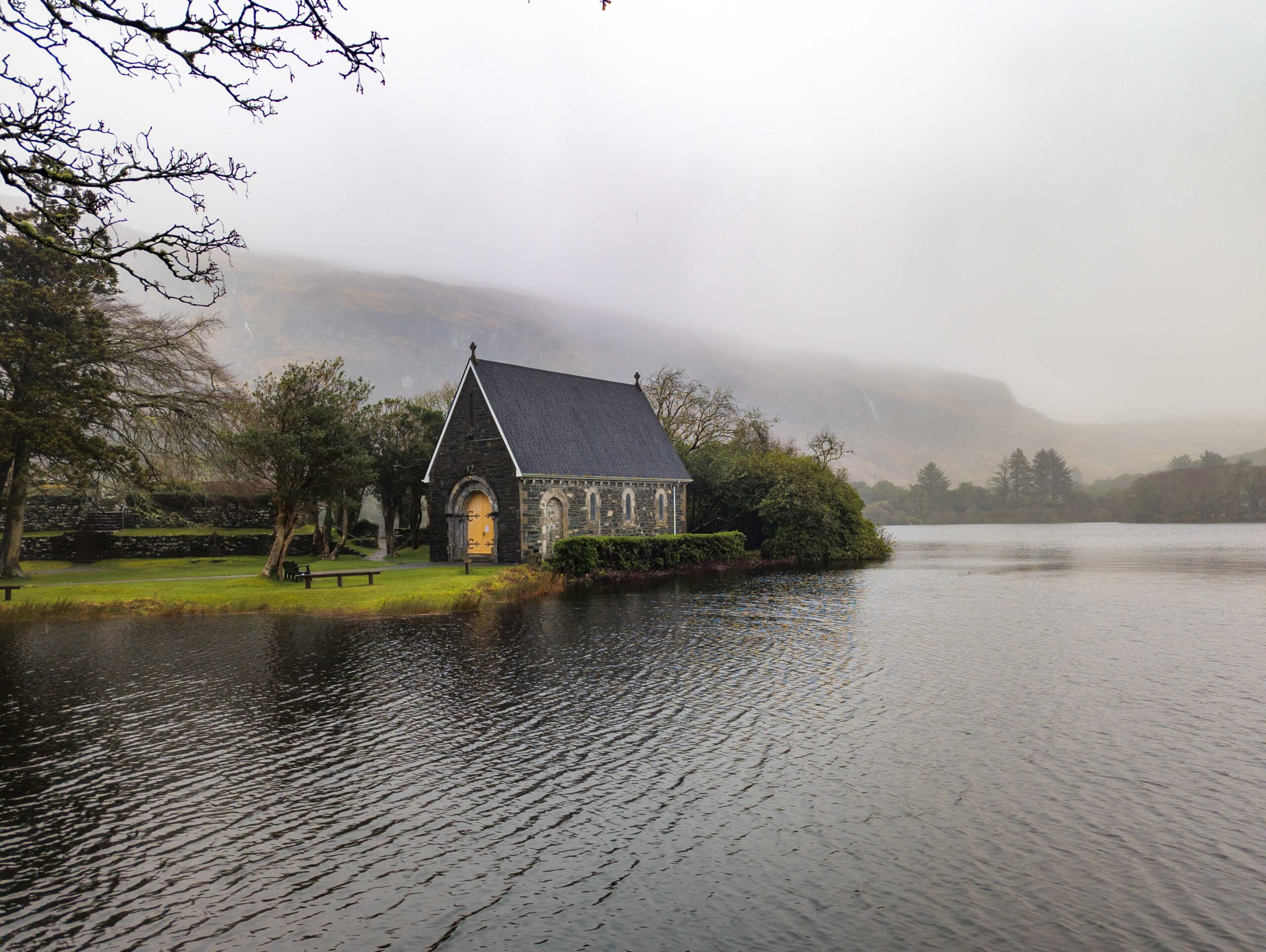 I took some random detours, exploring uncharted mountain roads before hitting Ladies View and Gougane Barra. This tiny, beautiful church sits on an island founded by St. Finbarr in the 6th century. Seeing it surrounded by a ring of rain-soaked mountains looked like something straight out of a fantasy film.