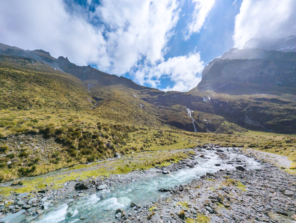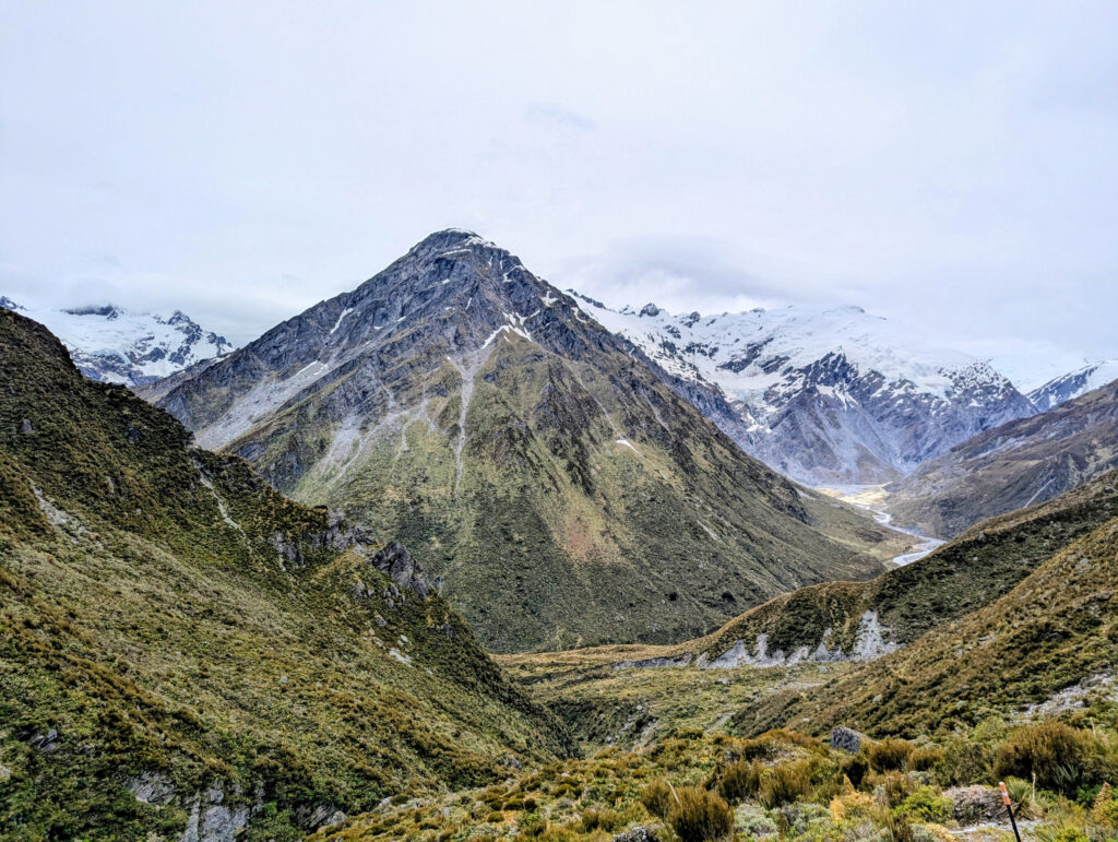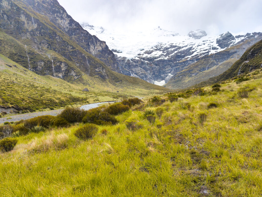 I reached the bright red Brewster Hut in good time and dropped my heavy pack. I still had energy to burn, so I pushed higher, leaving the tree line behind for the stark alpine world of the Brewster Glacier. The landscape up there is severe and beautiful—a monochrome study of grey rock, white ice, and silence. I sat by the terminal lake for over an hour, watching the clouds swirl around the peaks, feeling the moisture in the air increase. The atmosphere was heavy, electric with an incoming storm.