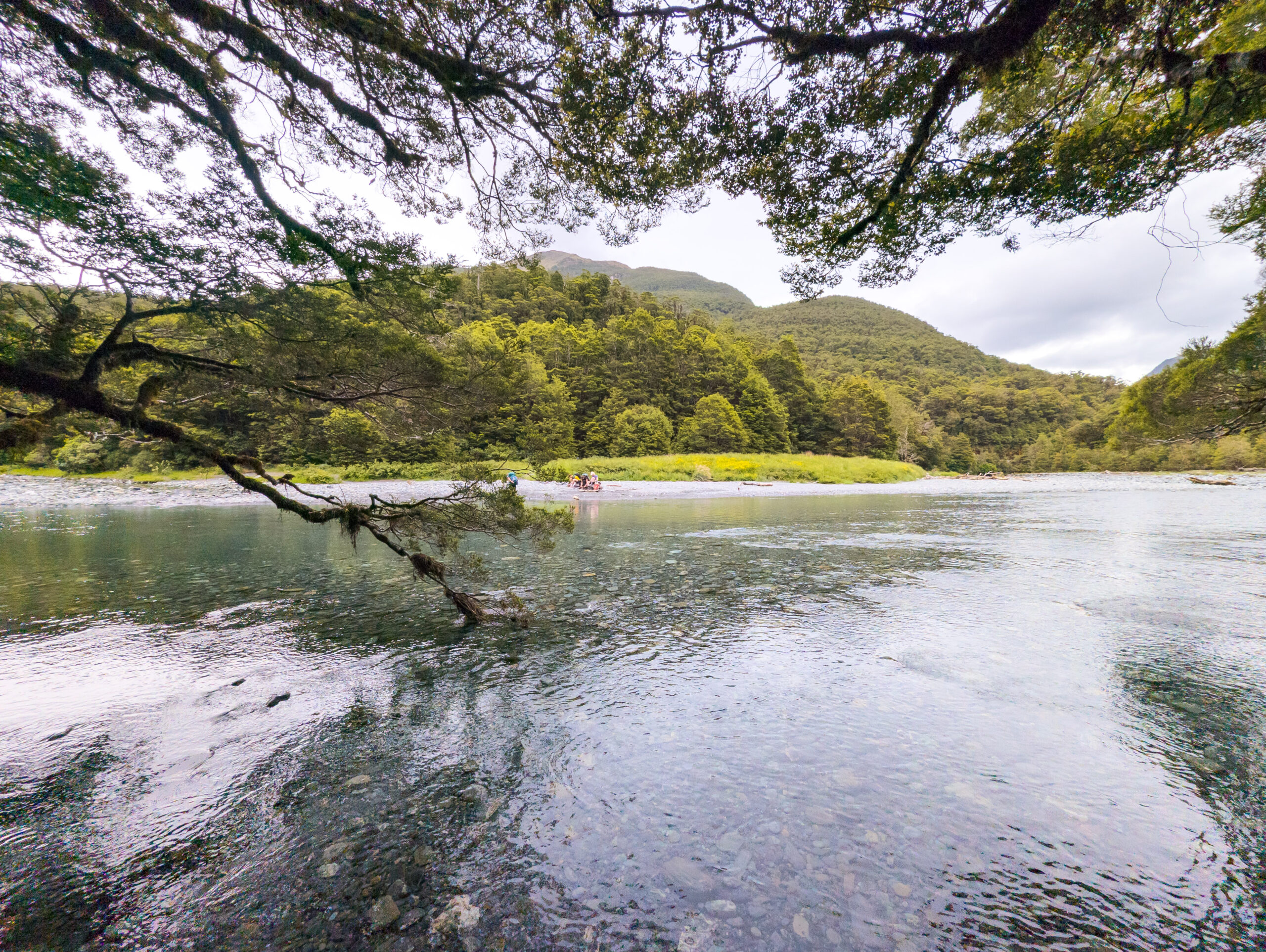 It was a sensory overload. We walked through thick, black swamp mud. Surprisingly, the mud was warm, heated by the sun throughout the day. It felt soft and organic squelching between our toes. Then, the track would dip into the river, and we would be plunging into crystal clear, freezing glacial water. The contrast was intense—warm mud, cold water, warm mud, cold water. The sandflies were absolutely vicious. They are the vampires of the New Zealand bush. As long as we kept moving, we were safe, but the moment we stopped to adjust a pack, they swarmed our bare legs. So we marched without stopping.