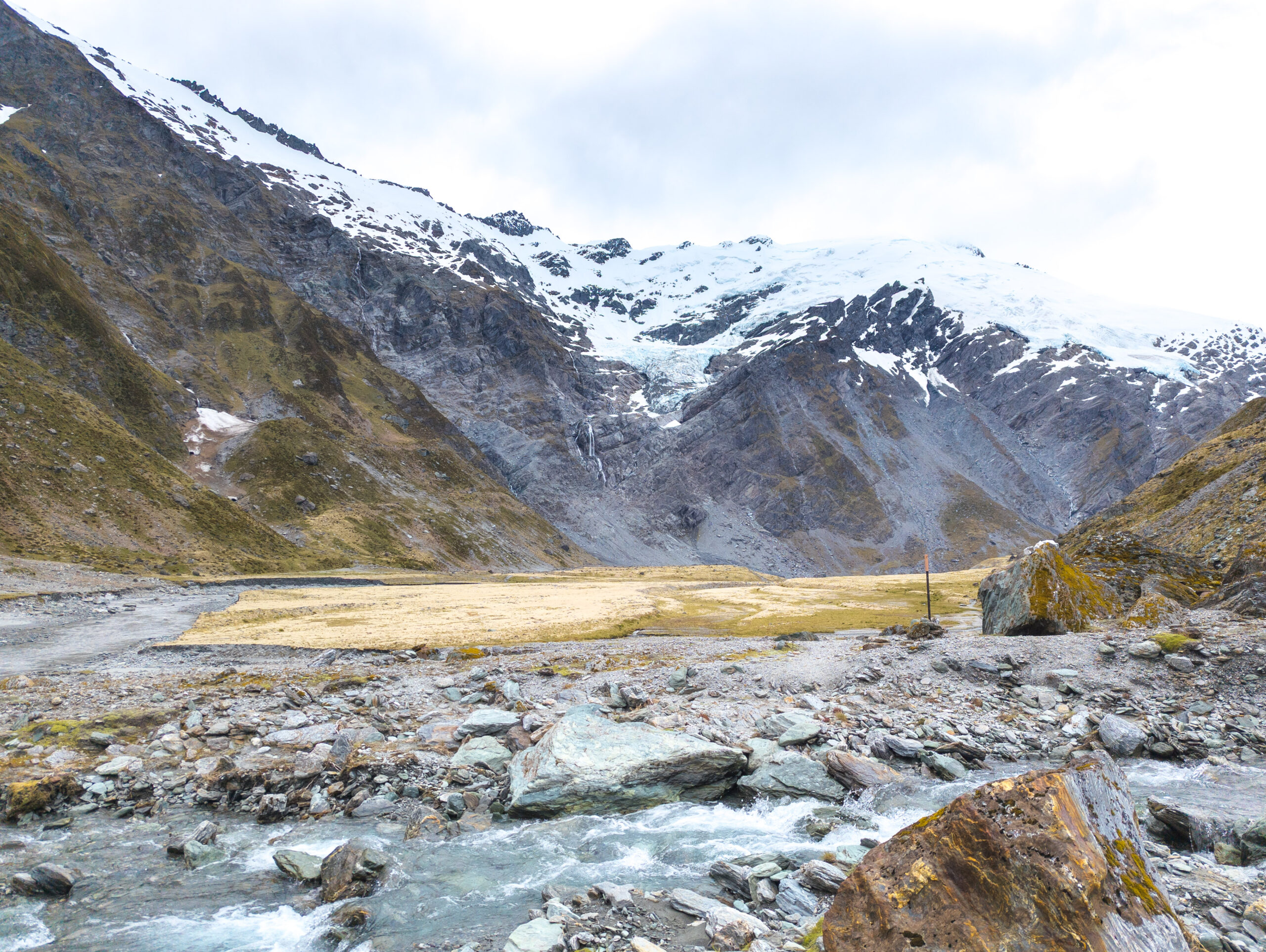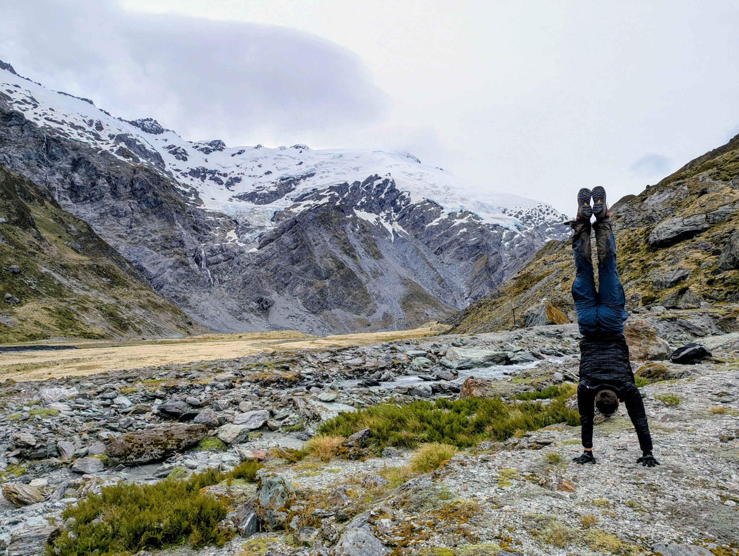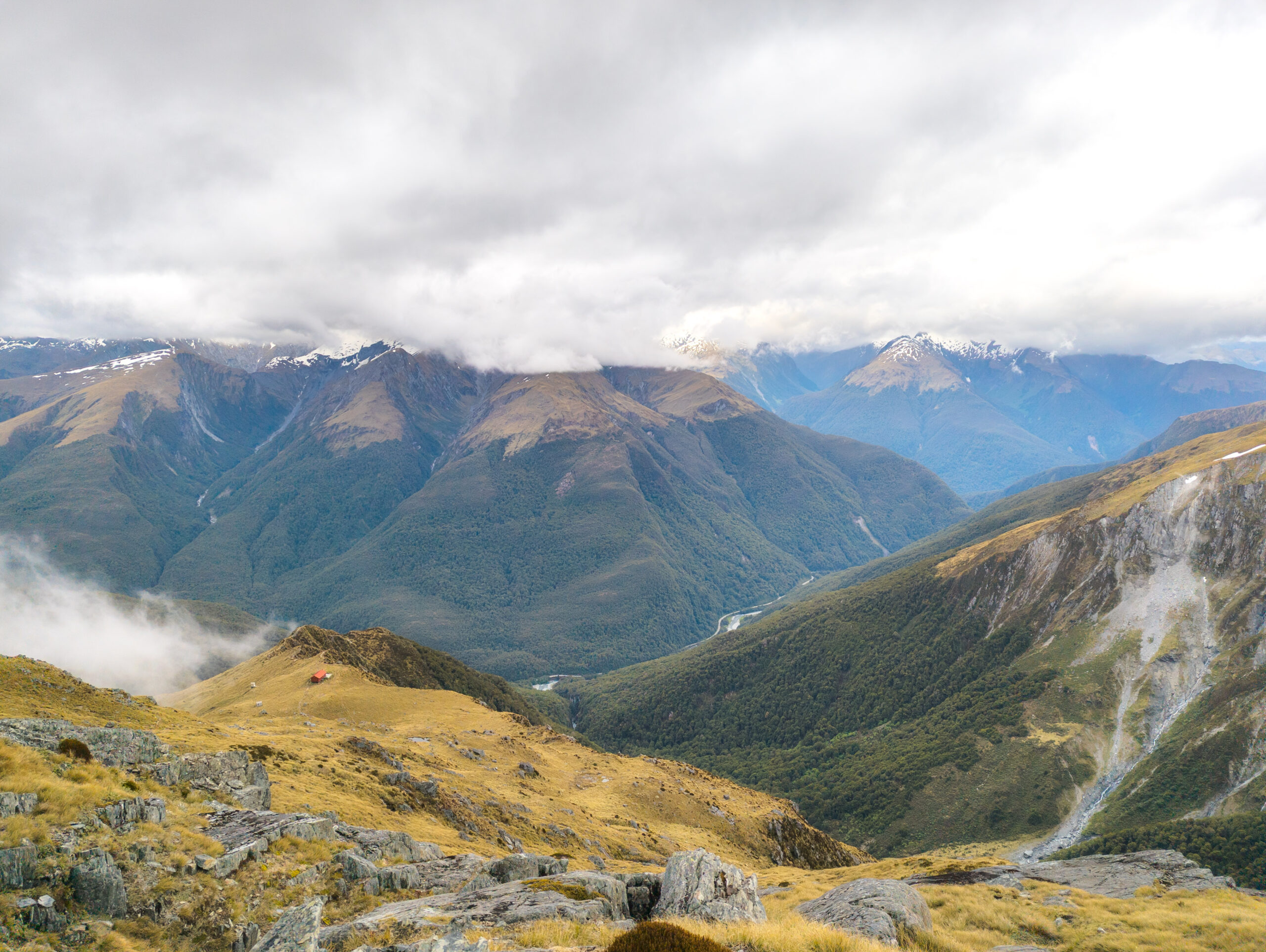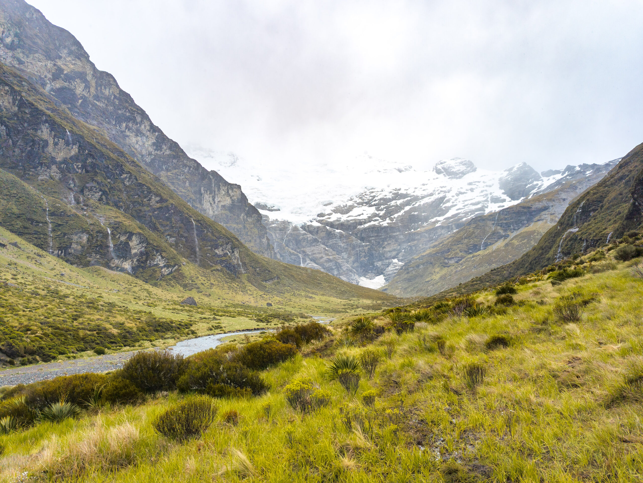 I reached the bright red Brewster Hut in good time and dropped my heavy pack. I still had energy to burn, so I pushed higher, leaving the tree line behind for the stark alpine world of the Brewster Glacier. The landscape up there is severe and beautiful—a monochrome study of grey rock, white ice, and silence. I sat by the terminal lake for over an hour, watching the clouds swirl around the peaks, feeling the moisture in the air increase. The atmosphere was heavy, electric with an incoming storm.