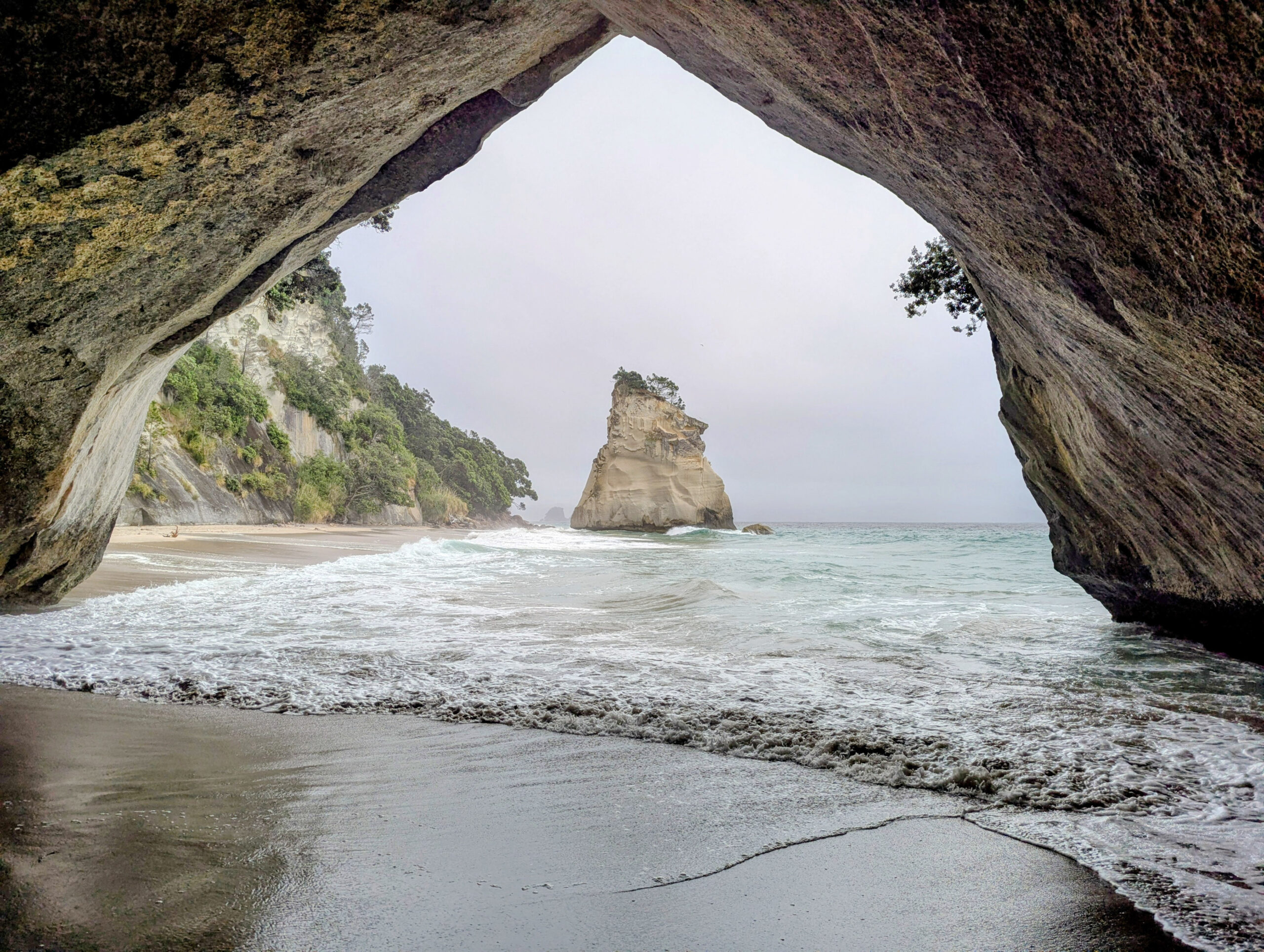 Next was Cathedral Cove (Te Whanganui-A-Hei). This is one of the most photographed spots in NZ, famous for its gigantic limestone archway separating two secluded coves. You might recognize it as the tunnel the Pevensie children use to re-enter Narnia in The Chronicles of Narnia: Prince Caspian.