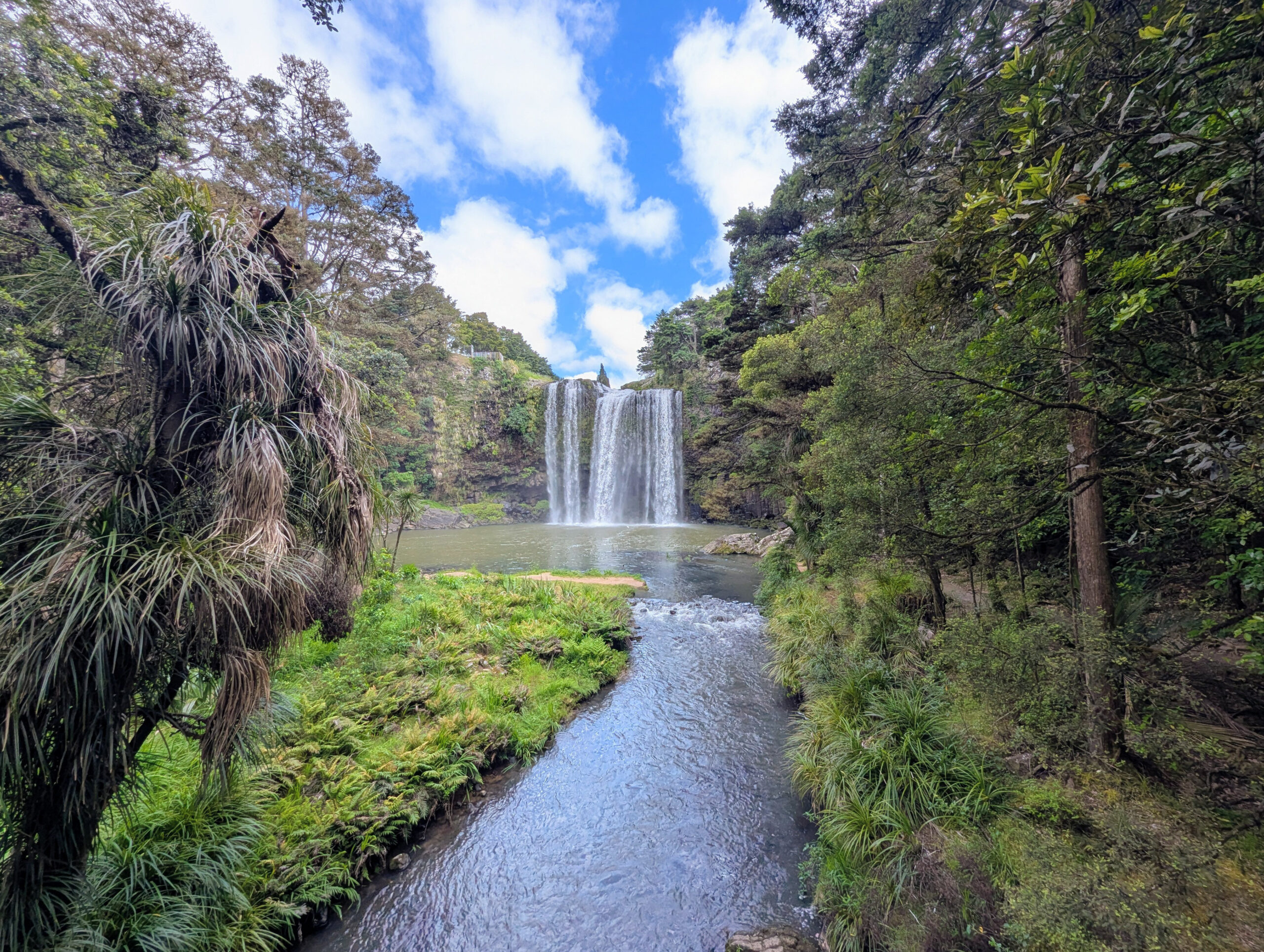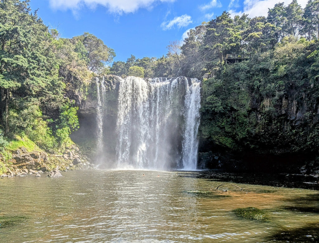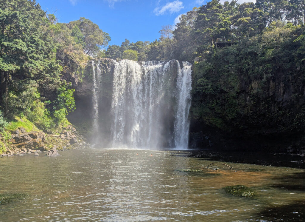 Our first stop was Rainbow Falls in Kerikeri. It’s a 27-meter waterfall that cascades into a deep pool. Moritz and I jumped in for a swim. To my surprise, the water was warm! It was a great wake-up call.