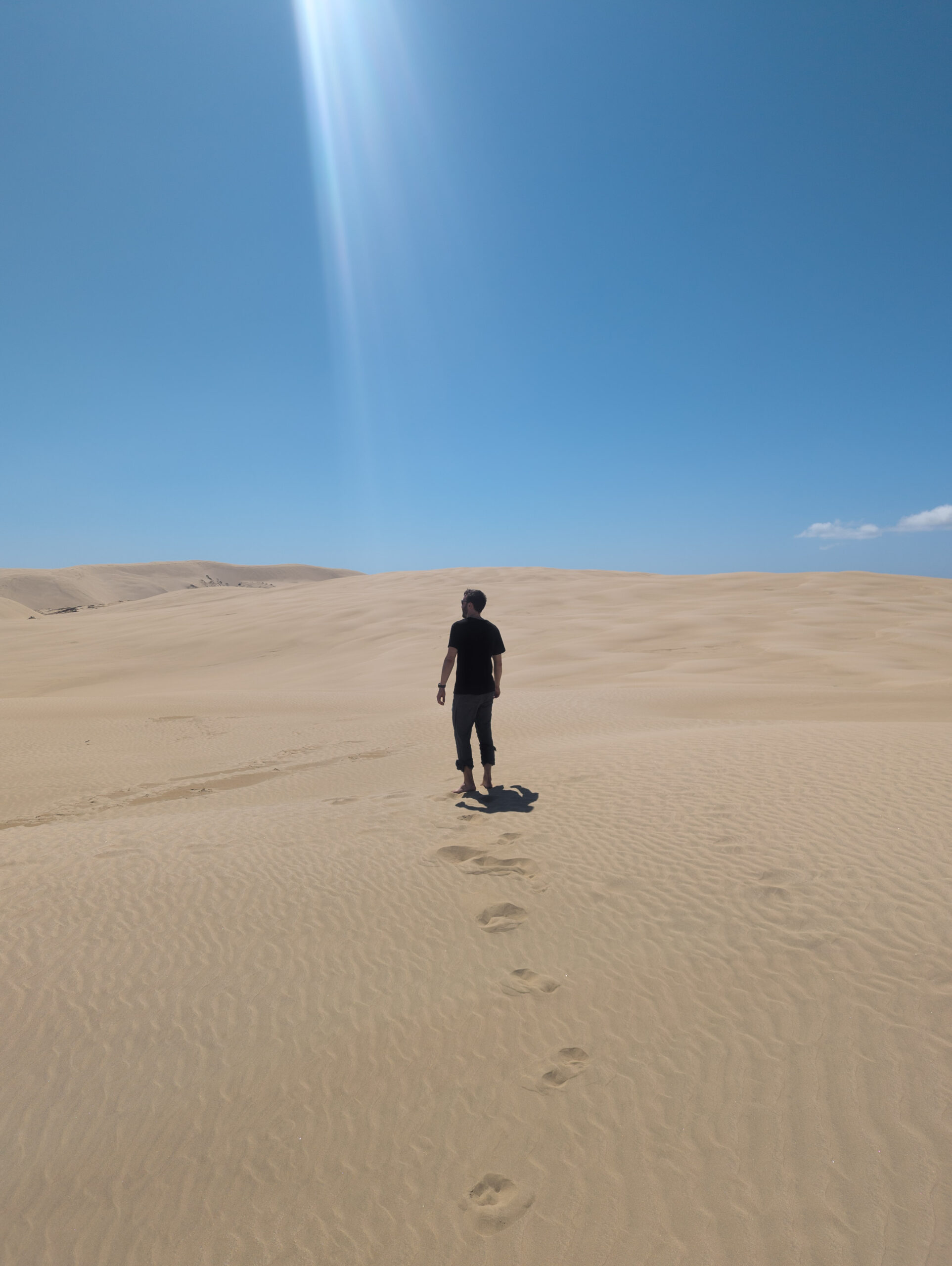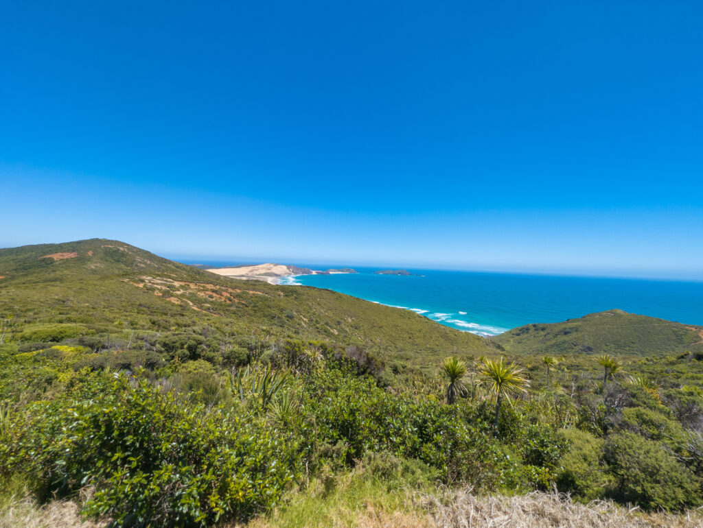 On the way back down, we stopped at the Te Paki Giant Sand Dunes. These mountains of sand rise up to 150 meters high. I rented a sandboard and hiked up. The wind whips the sand into your face, but speeding down on a board is pure adrenaline.