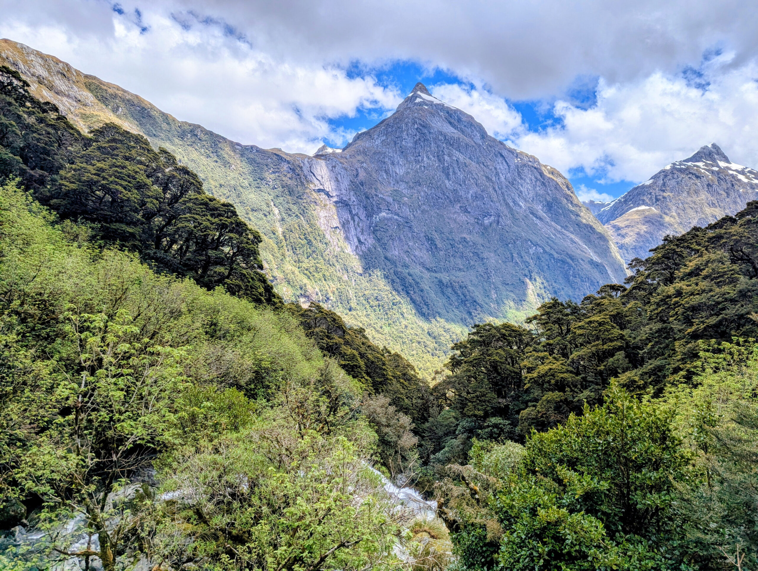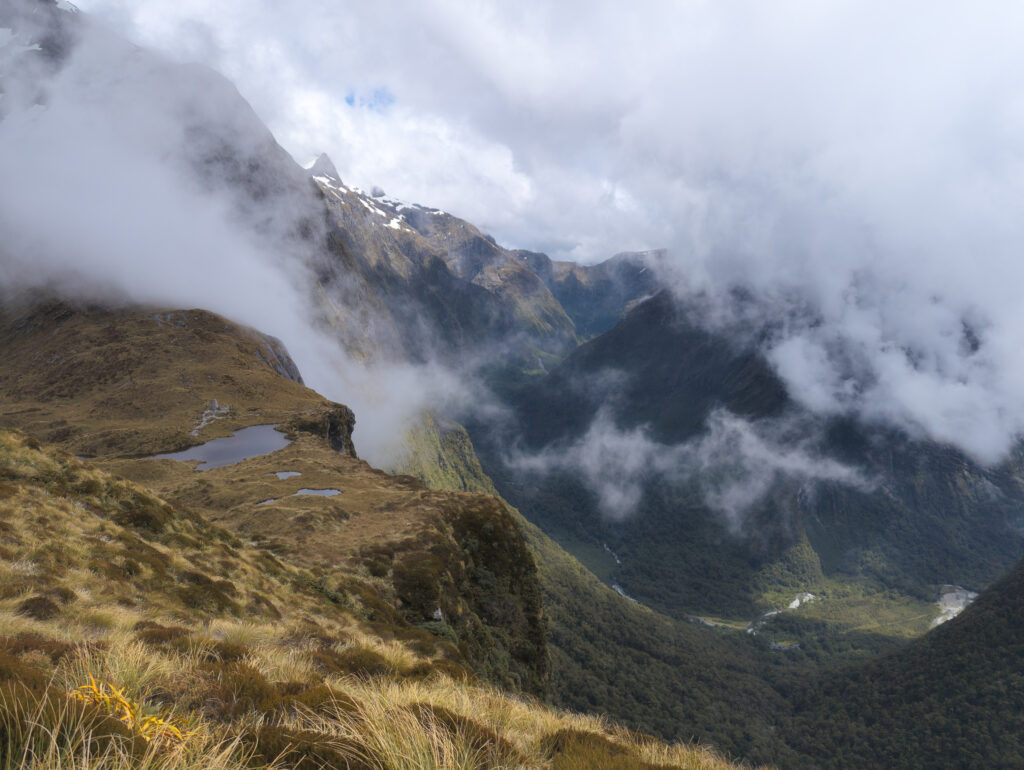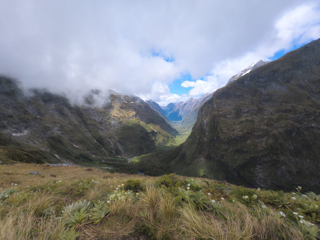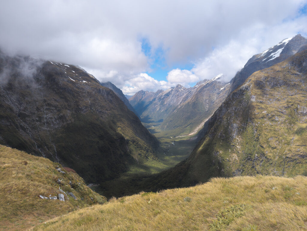The boat dropped us at Glade Wharf, and we walked into the beech forest. For the next four days, that forest became my world. The track follows the Clinton River up a glacially carved valley, flanked by sheer granite walls that disappear into the clouds. It is lush, prehistoric, and overwhelmingly green. But here is the controversial truth: I wasn’t blown away. In McKinnon’s day, this walk was the only way to see the majesty of Milford Sound. The sheer effort of the journey made the destination a revelation. But today, a sealed road cuts through the mountains to the sound. You can drive there in comfort, park your car, and see the same iconic view of Mitre Peak that hikers trudge 53 kilometers to witness. Coming from the raw, jagged peaks of the Cordillera Huayhuash in Peru or the granite towers of Torres del Paine in Chile, the Milford Track felt tame. It is a green tunnel. For miles and miles, you are walking under the canopy of silver beech and ferns. It is beautiful, yes, but it lacks the constant visual punch of the open alpine. You spend days in the valley floor, waiting for the brief moments of exposure on the pass.