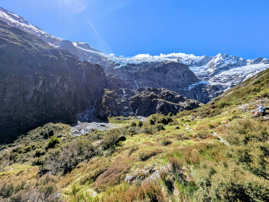 I stayed up there for nearly three hours. I couldn’t leave. The hut was below me, and slowly, the first groups of hikers started to arrive there. But up here, I had a 360-degree panorama of the Southern Alps entirely to myself. I watched the light change on the Sealy Range, watching the shadows lengthen and the snow soften in the sun. I waited until the first few hikers from the hut started to make their way up toward my viewpoint. Only then, when my solitude was about to be broken, did I pack up and head down.