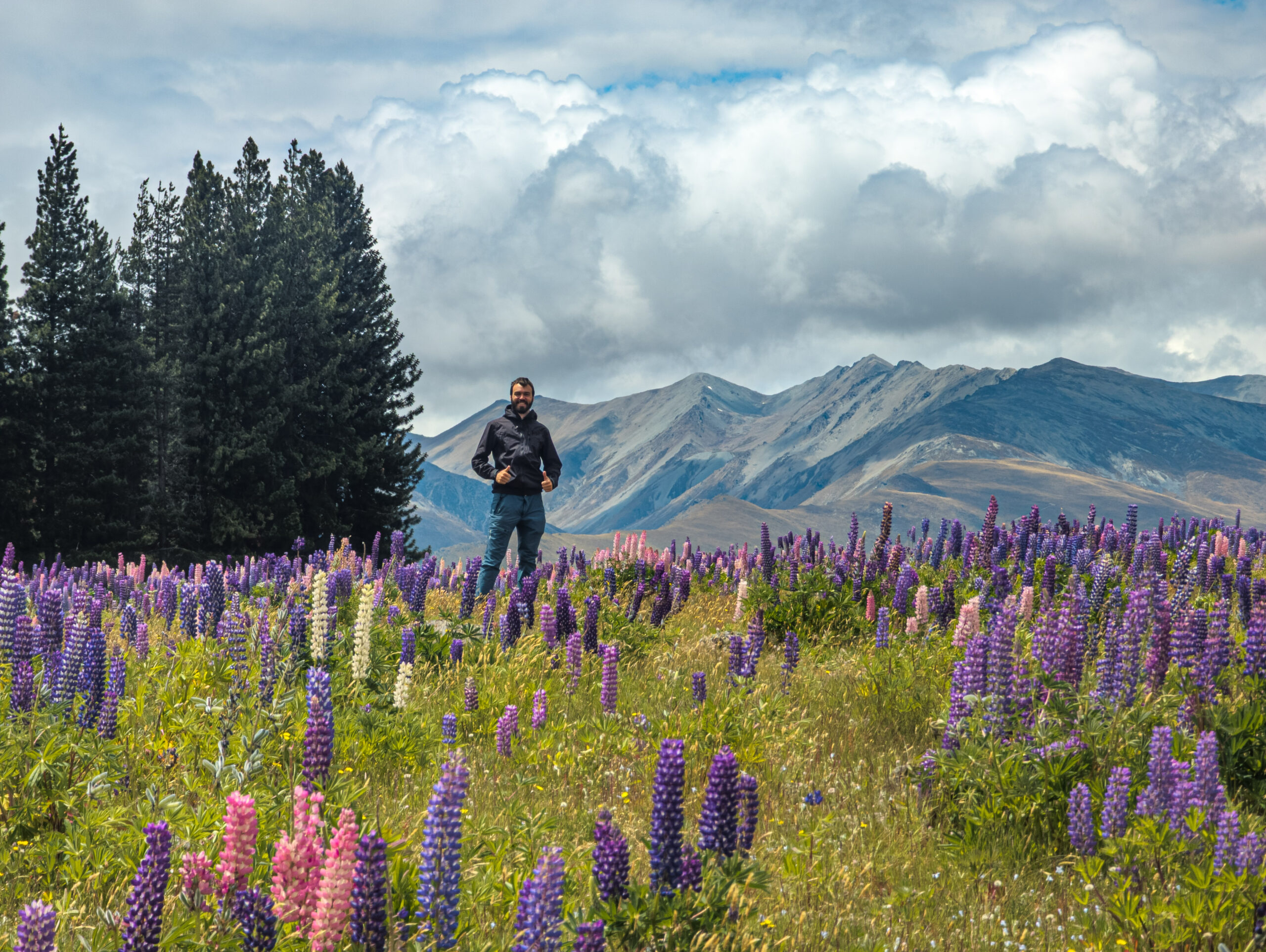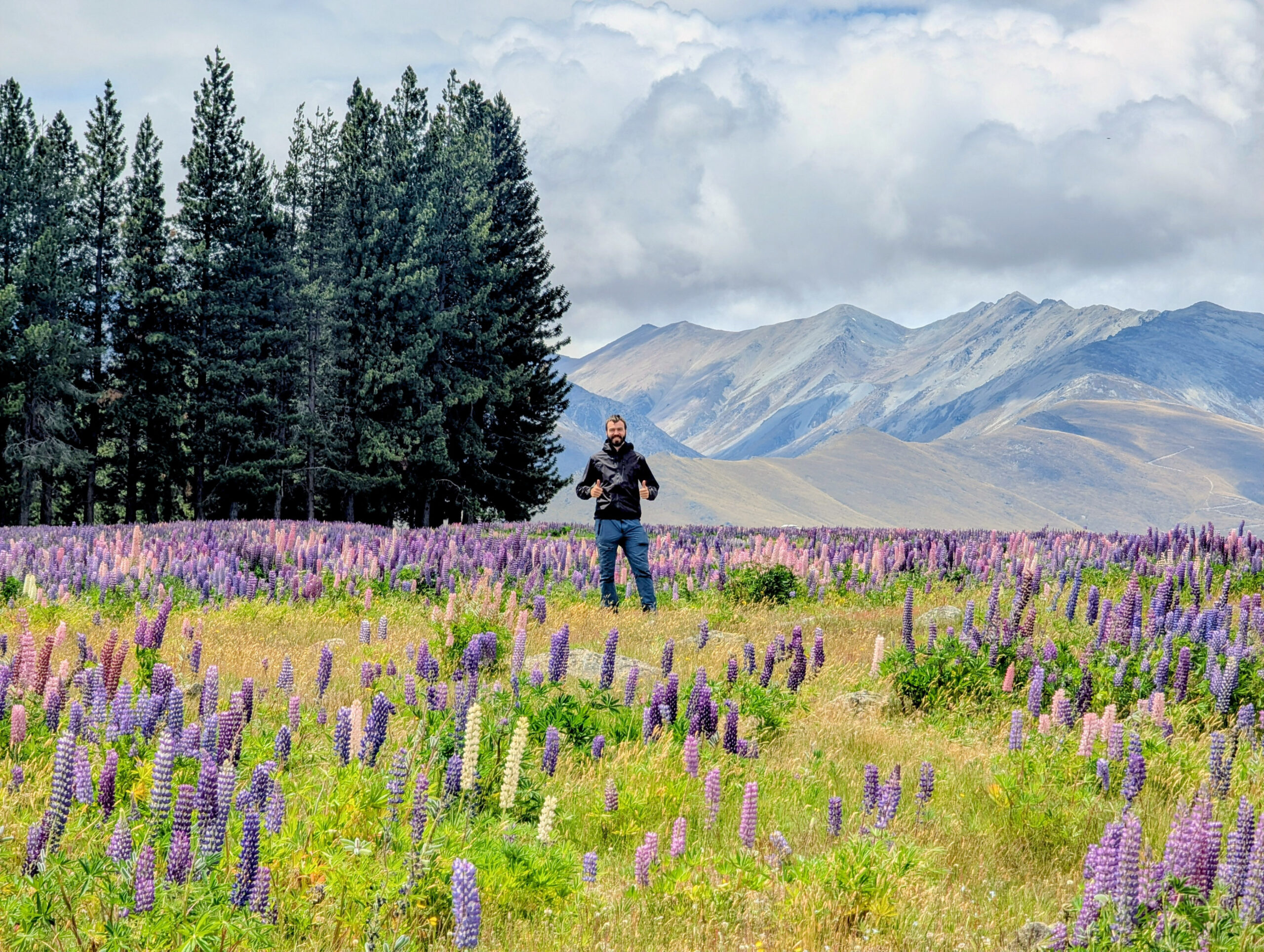 The weather in Mount Cook was still abysmal, but just down the road at Lake Tekapo, the sun was shining. We decided to escape the rain together.